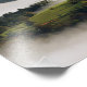 Photo print of the church of St. Thomas (Sveti Tomaž) on a hill surrounded by morning fog in the countryside of Slovenia near Skofja Loka during a pink sunrise with Alps mountains in the background.