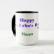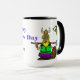 In this design, St. Urho is dealing with a sassy grasshopper who sits on top his pitchfork and is giving the "Peace" sign with his right hand.  You can buy this design on any of the other mug items offered. And, you can change the text and customize this for any purpose you'd like.