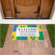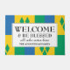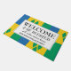 ST VINCENT Family Welcome Doormat with CUSTOMIZABLE TEXT. Stylish, patriotic WELCOME Doormat with the wording WELCOME & BE BLESSED ALL WHO ENTER HERE plus placeholder name. The background is the flag of ST VINCENT & THE GRENADINES in an oversized all-over tiled pattern. All text is CUSTOMIZABLE so you can amend the wording to suit your needs, eg. add family name, family motto, inspirational quote.
