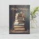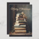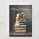 Beautiful stack of old looking books with Christmas Lights and decorations