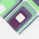 This medium fleece blanket has a mid-century modern design of rectangles stack three thick in cool colours of blues, greens, and purples on a field of white. Want the same design with different colours? Message me.