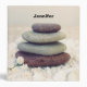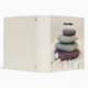 A binder with a photograph featuring rocks stacks on top of each other. Surrounded by loose white rocks and little white flowers.