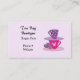 A unique card featuring colourful stacking teacups with fun patterns. Customize with all of your business information as desired.