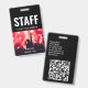 The staff name badge can be customized with your event name, date and venue information. The concert crowd photo may be used or replaced with your own photo. The QR code on back can be customized to direct to your website.
