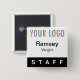 Staff Pin Back Name Badge with Logo Black Button