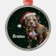 Fun holiday ornament features an American Staffordshire Terrier dog with Santa cap and festive Christmas lights. Add a personalized touch with dog's name or other special message. Great gift idea for dog lovers!