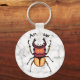 Personalized beetle entomology keychain with an artistic vector illustration depicting a stag beetle with big antlers patterned with decorative elements in fun yellow and orange colours. Great gift for an entomologist with interest in Coleoptera.