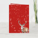 A watercolor-painted stag reindeer is the feature of this red holiday woodland card with lightly falling snow. The graphics continue on the inside and backside of this card. Available in multiple sizes.