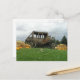 This post card displays pumpkins sitting around hay bales with a replica of a stage coach from the Old West parked prominently in the centre. Perfect for those short notes or messages in the Fall to friends and family.