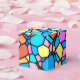 Bright light colours of stain glass windows. Inspired by my love of 'Tiffany Lamps' Colours include hues of orange, red, blue, purple and pink. Even a bit of green.
