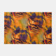 Abstract mosaic drawing of rustic carved stains in a vivid orange to dark shades and some sepia and ochre... with parts that resemble a gorilla's snout and other parts look like moldy tangerine peel.