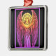A dramatic stained glass angel, in vibrant jewel colours with a golden halo, announcing the advent of Christmas.