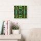 Stained Glass Art Deco in Green and Gold Square Wall Clock