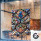 Stained Glass Art is printed on a white sheet of plastic making colours look very dynamic. Please note that the white sheet is opaque and obscures text and art when viewed from the back of the window cling.