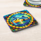 Stained Glass Art with Dolphins Leaping at Sunset Coaster