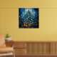 Stained Glass Blue Christmas Poster