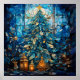stained glass blue christmas poster