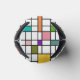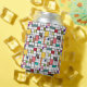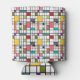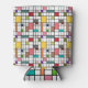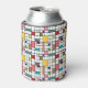 This can cooler has a mid-century modern design of a grid of black lines with squares and rectangles in retro colours on a field of white.