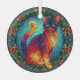 Stained Glass Cat with Christmas Holly Glass Ornament