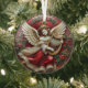 Stained Glass Christmas angel with harp and holly Glass Ornament
