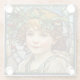 A square glass coaster with a stained glass design, depicting a Christmas child crowned in holly leaves and berries.