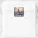 A charming set of square stickers with an image of a winter church in stained glass style.