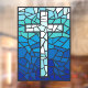 Stained Glass Cross Blue Black White Window Cling