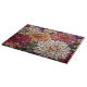 Dahlias, long associated with dignity, grace, and heartfelt gratitude, shine here in a stained-glass style that looks especially lovely on tempered glass. Whether you're slicing vegetables, serving charcuterie, or displaying it as functional décor, this piece brings elegance and color to every corner of the home.