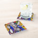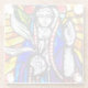 Bright and Colourful Stained Glass Design with a Religious Figure. Church theme coaster drinks mat.