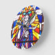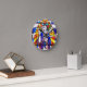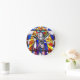 Clock for a vestry or religious office perhaps. Bright and Colourful Stained Glass Design with Religious Figure. Church clock.