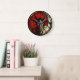 The clock features a mesmerizing stained glass devil head printed on its surface, giving it a unique and intriguing look. The intricate details of the devil's head are beautifully captured in vivid shades of red and black, creating a visually stunning centerpiece for any wall.