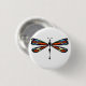 A Hand-sketched dragonfly in prismatic stained glass colours flits gracefully across this button.