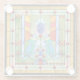 Square glass coaster with an image of a stained glass fantasy created with red, orange, yellow, green, blue, aqua and pink stained glass with a floral design, dotted with luminous green orbs and deep red crystal orbs. See matching round sandstone coaster, square plastic coaster and square paper coaster. See the entire This & That Coaster collection in the HOME section.