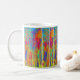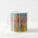This design is reminiscent of beautiful stained-glass cathedral interiors with tons of light shining in! Vibrant colours wrap around this mug for yourself or a gift for a friend! Consider the morphing mug style with the vibrant blue handle for a surprise treat with hot beverages!