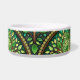 Stained glass-inspired bowl with green leaves and vines in vibrant colors, conveying an artistic, nature-themed design. Front and side views shown.