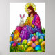 Stained Glass Easter Egg Holiday decor with jesus christ and the resurrection bible easter bunny.