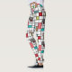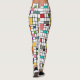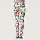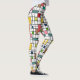 These leggings have a mid-century modern design of a grid of black lines with squares and rectangles in retro colours on a field of white.