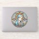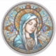 Beautiful religious round car decal for your car or SUV! Design features an AI generated round portrait of the Madonna in stained glass.