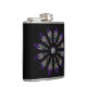 A lovely stained glass pattern adorns this flask in dominant colours of purple, blue, yellow and black. Twelve abstract feathers circle a central mask to form a spiritual mandala design with a Native American sensibility.