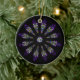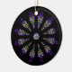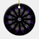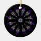 A lovely stained glass pattern adorns this holiday ornament in dominant colours of purple, blue, yellow and black. Twelve abstract feathers circle a central mask to form a spiritual mandala design with a Native American sensibility. Appropriate for Christmas or any time of year.