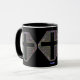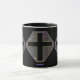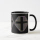 This mug contains a trio of stained-glass -type designs and crosses.