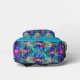 Your child will be the envy of all their friends with this brightly coloured stained glass backpack. The background is done in turquoise with their name on it in an elegant script.   The front pocket and the sides going all around are done in a vibrant coloured stained glass pattern in dark blue, turquoise, light pink, dark pink and purple.  Truly a unique, beautiful backpack that they will want to use year after year!