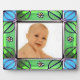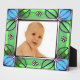 Beautiful frame with daisies in green and soft blue stained glass. Customize it adding a photo you like more.