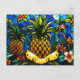 Stained Glass Pineapple and Tropical Flowers Postcard