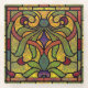 A glowing stained glass pattern in vintage style. The age-old art of leaded and stained glass is re-created here against a textured background. Light shining through a translucent pane of coloured glass creates a glow of peace and tranquillity.