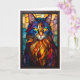 Stained Glass Style Charming Cat with Yellow Eyes Card
