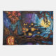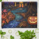 Stained Glass style haunted house in a scary wood, with the full moon overhead