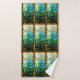 An art nouveau era stained glass window of starfish under the sea by tiffany. In colours of blue, teal, gold and brown. An elegant vintage design.