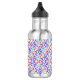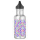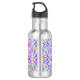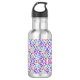 Stainless steel water bottle with a black cap, featuring a colorful, intricate paisley and floral pattern in shades of purple, pink, and green.