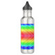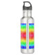 Stainless steel water bottle with a vibrant, geometric rainbow pattern. The design features layered, textured colors of blue, green, yellow, and red.